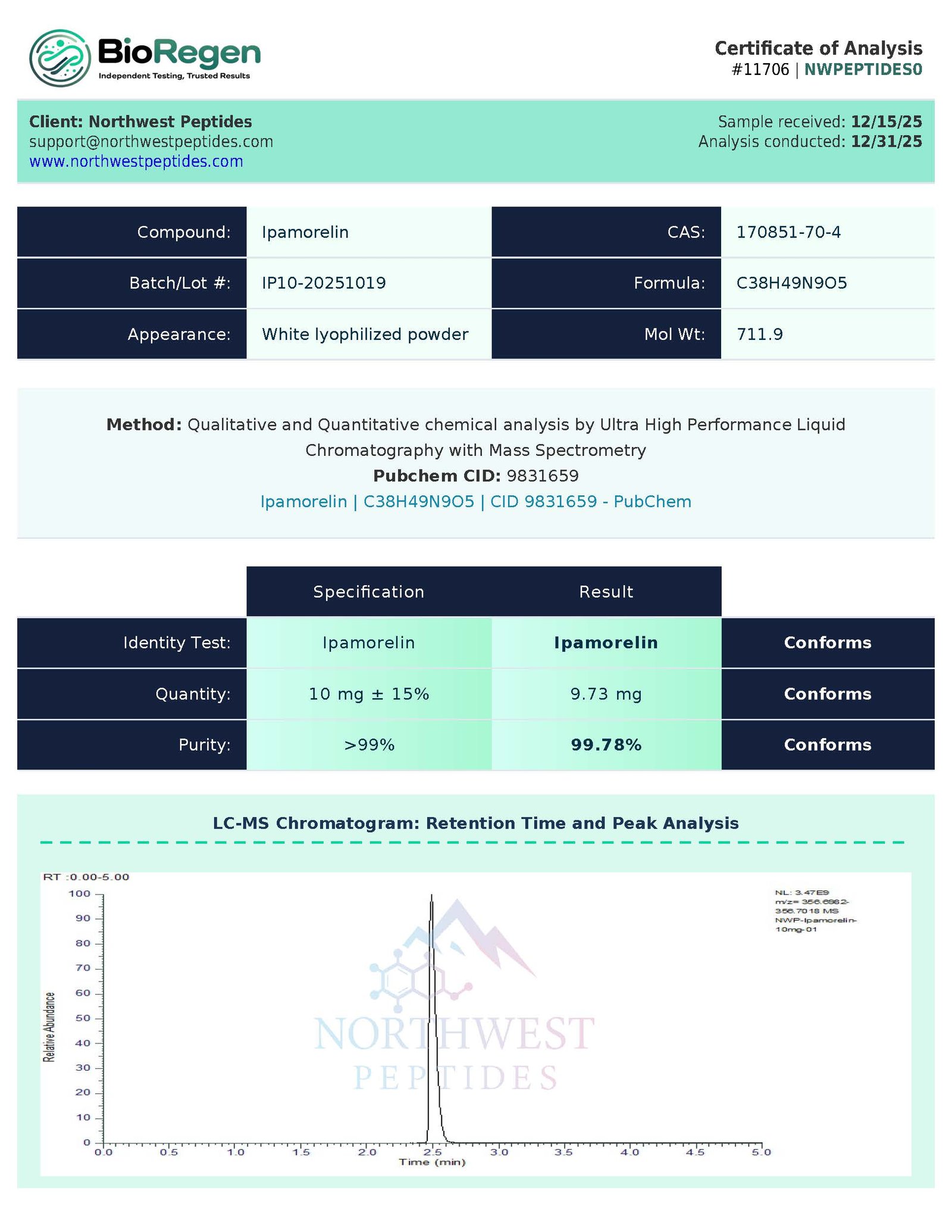 Ipamorelin is a highly selective Growth Hormone Secretagogue (GHS) peptide used extensively in scientific research to explore pituitary function, endocrine signaling, and metabolic regulation. As a pentapeptide with strong affinity for ghrelin/GHS‑R receptors, Ipamorelin allows researchers to study targeted growth hormone pathways without broad hormonal interference.
