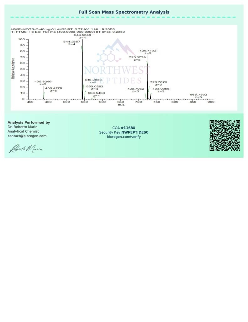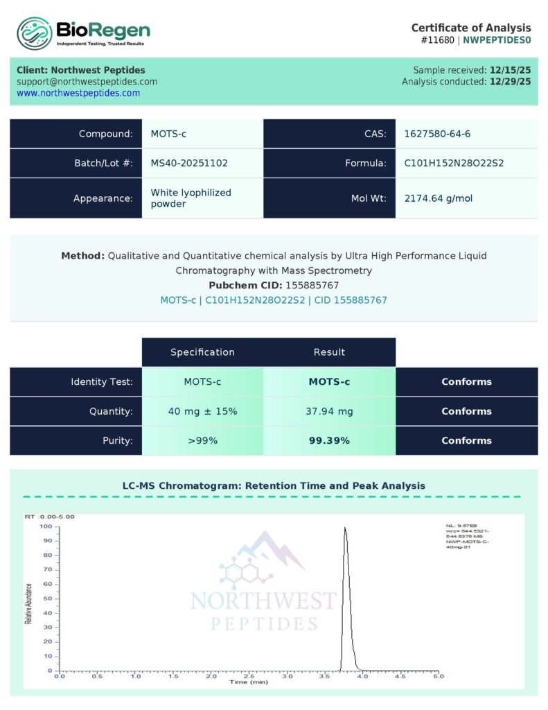 Provided in high‑purity lyophilized form, MOTS‑C supports consistent, accurate results across a wide range of in‑vitro and biochemical research applications.