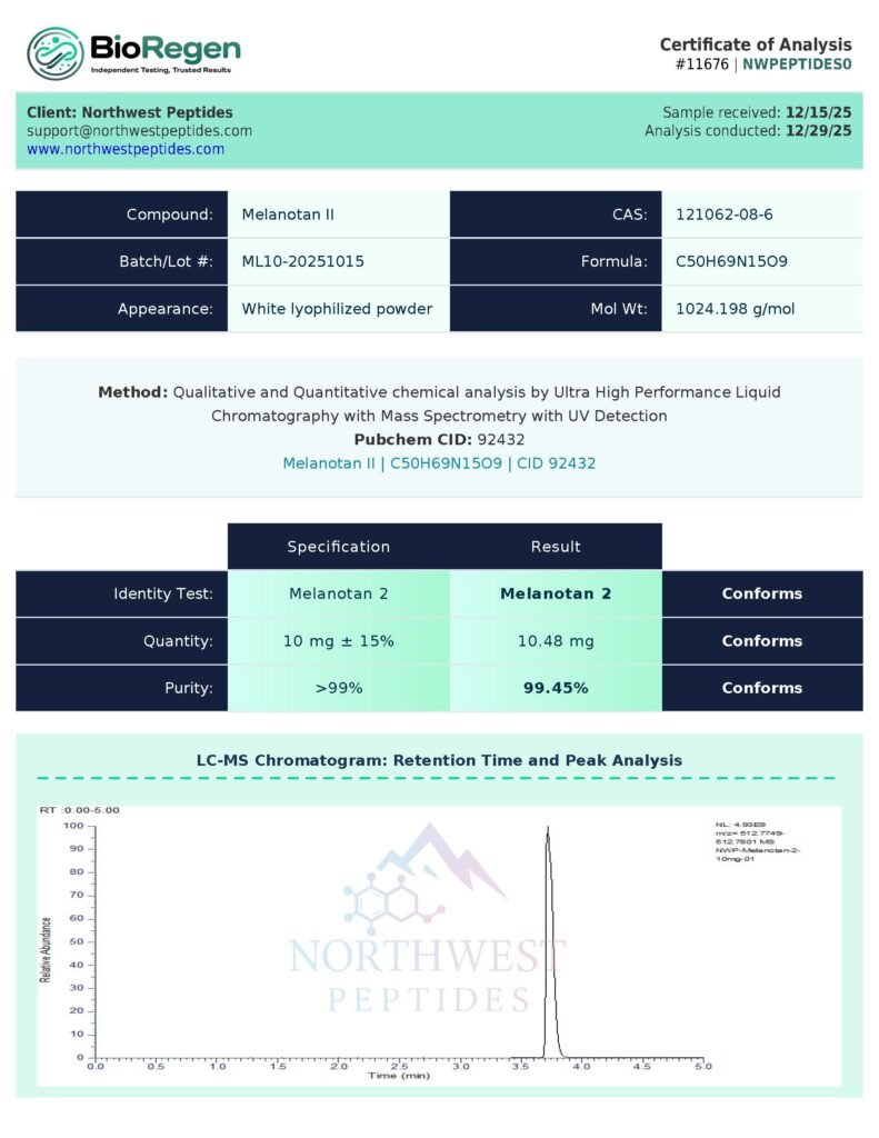Each vial is produced with high purity and delivered as a lyophilized powder to maintain integrity throughout handling, shipping, and storage. MT‑2 is engineered for precision-focused research environments where reliability is essential.