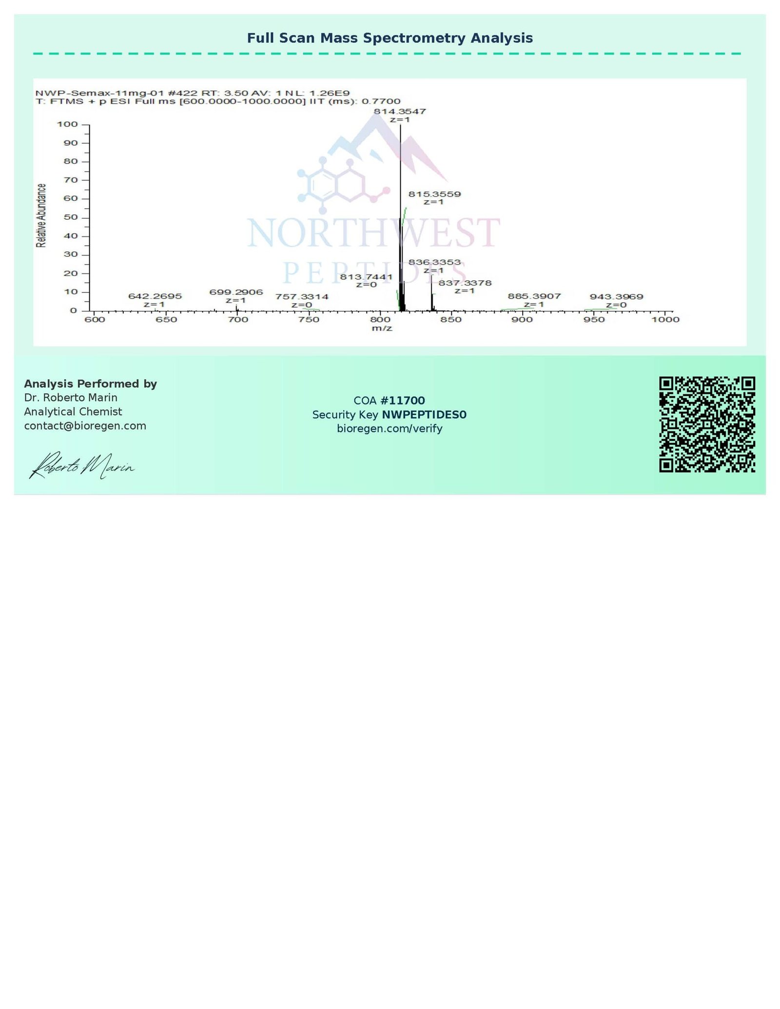 COA – Semax 11mg